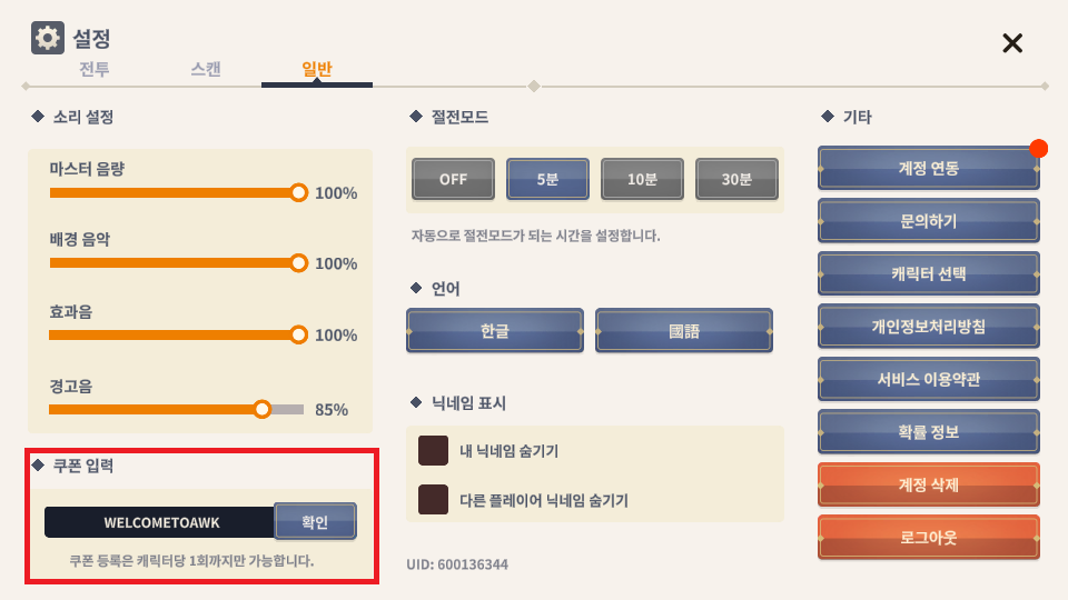 - 원하는 무공 or 영물이 나오지 않았을 때 캐릭터 선택 or 계정 삭제를 진행